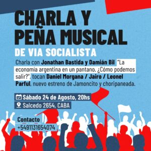 📣Si! Este 24 de agosto vení la 3° Peña Musical de Vía Socialista en Barrilete Libros 👉Sumate a este espacio compartir expresiones artísticas y debatir