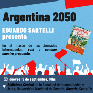 ATENCIÓN ROSARIO Presentación del libro Argentina 2050. Una vía socialista posible. Con debate y participación del público. A cargo de Eduardo Sartelli Jueves 19/09, 18hs.