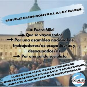 Volvemos a Congreso contra la Ley Bases! Fuera MileiQue se vayan todosPor una Asamblea Nacional de Trabajadores/as Ocupados/as y Desocupados/asPor una salida socialista Lunes 29/04,