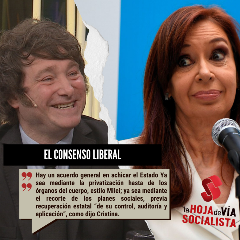 ¿En qué consiste este consenso liberal? En la convicción de que es necesario achicar el Estado. Ya sea mediante la privatización hasta de los órganos del cuerpo, estilo Milei; ya sea mediante el recorte de los planes sociales, previa recuperación estatal “de su control, auditoría y aplicación”, como dijo Cristina en su intervención en la CTA.