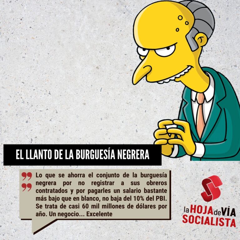 Hay una capa muy grande los patrones que ya lograron este sueño. El empleo en negro es una buena muestra de eso. La burguesía negrera nos roba más de lo que nos roba normalmente cualquier patrón, al ahorrarse aportes sociales y jubilatorios. Ese “ahorro”, que es un robo, es mayor aún porque los salarios en negro son más bajo que los salarios en blanco, incluso si no tenemos en cuenta los aportes.