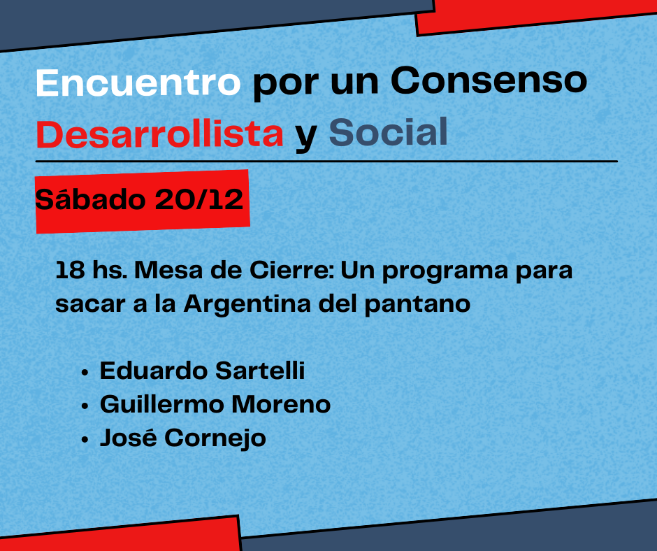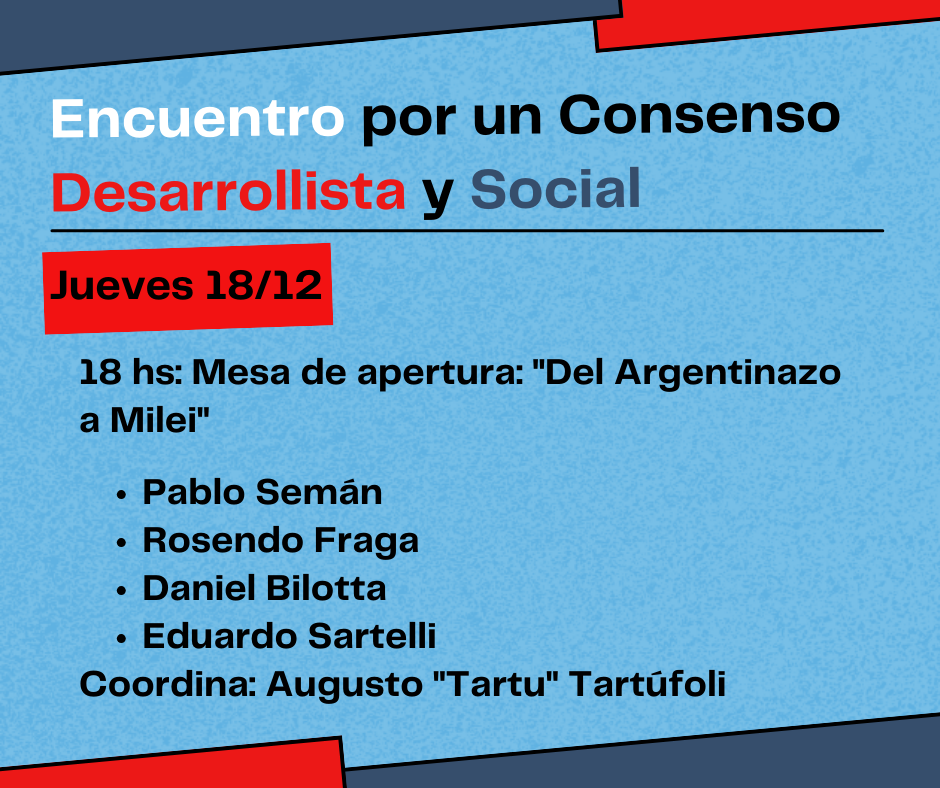 La Argentina atraviesa, hace más de 15 años, un consenso liberal, que hoy está dirigido por un representante extremo, a cargo del Poder Ejecutivo. Un consenso que lleva a la Argentina a destruir lo poco que tenía (su sistema científico, educativo y médico) y transformarse en un país agro-minero, con trabajo de calidad para una minoría y la miseria más absoluta para la mayoría: Belindia. Ese consenso es el programa de la burguesía argentina, que viene avanzando a pasos agigantados, que amenaza destruir al país como tal y entregarlo a la administración del Tesoro Norteamericano. Las experiencias de la oposición en el gobierno no solo no han mostrado ninguna solución, sino que fueron parte del problema. Para hacer frente a esta situación, para rescatar a la Argentina para sus trabajadores, es necesario crear un espacio que sirva para hacer un balance de por qué llegamos hasta acá y para diseñar un proyecto que contemple el desarrollo económico ligado al bienestar social. No solo pensarlo y proyectarlo, tenemos que ser capaces de explicarlo a toda la gente que hoy no vota o que vota en el sentido de este consenso. Para eso, convocamos a dirigentes, intelectuales, militantes, compañeros en general a un encuentro para debatir un balance de lo recorrido (el peronismo y la izquierda) y el diseño de otro país: su economía, su política exterior, su educación y su sistema científico. Y, por supuesto, lo más importante: ¿cuál es el sujeto social que puede liderar ese nuevo rumbo?