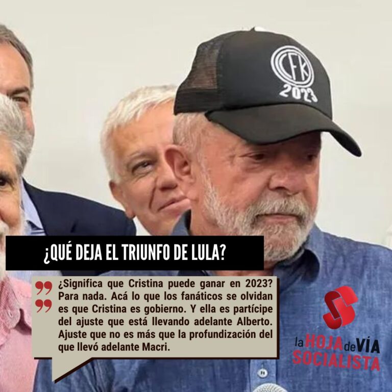 Entonces, yendo a la realidad argentina, ¿significa esto que Cristina puede ganar en 2023, como se entusiasman los K ante el triunfo de Lula? Para nada. Acá lo que los fanáticos se olvidan es que Cristina es gobierno. Y ella es partícipe del ajuste que está llevando adelante Alberto. Ajuste que no es más que la profundización del que llevó adelante Macri.
