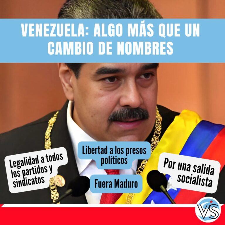 Por un movimiento popular que expulse a Maduro, libere a todos los presos políticos, restablezca las organizaciones obreras y convoque a elecciones sin proscripciones.